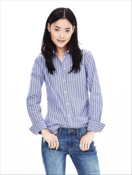I can never pass on the classic blue and white striped shirt and the Riley Fit Blue Stripe Shirt is no exception...it's perfect worn alone or layered under your favorite sweater.